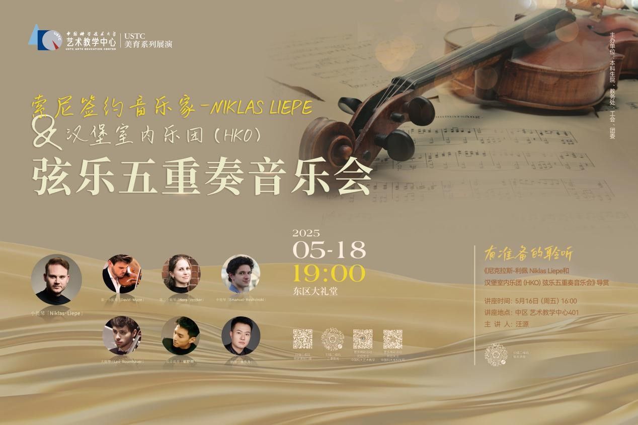 为丰富学校美育文化活动,本科生院、教务处、工会和团委主办的“USTC美育系列展演”之《尼克拉斯·利佩和汉堡室内乐团(HKO)弦乐五重奏音乐会》将于518日晚在校内举行。