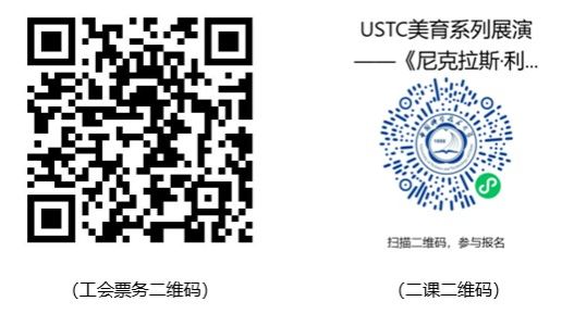 本场演出通过工会订票系统预约,每人限订2张,按座位就座(可扫描下方二维码跳转订票);本次演出纳入第二课堂,可进入“青春科大”智慧团学综合信息平台报名(可扫描下方二维码报名)。